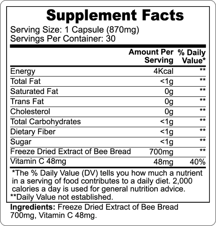 Bee Pearl is a concentrated form of bee bread in vegetarian capsules that don't have any gelatin. This one-of-a-kind product is ethically taken from the beehives and then concentrated using patent technology.